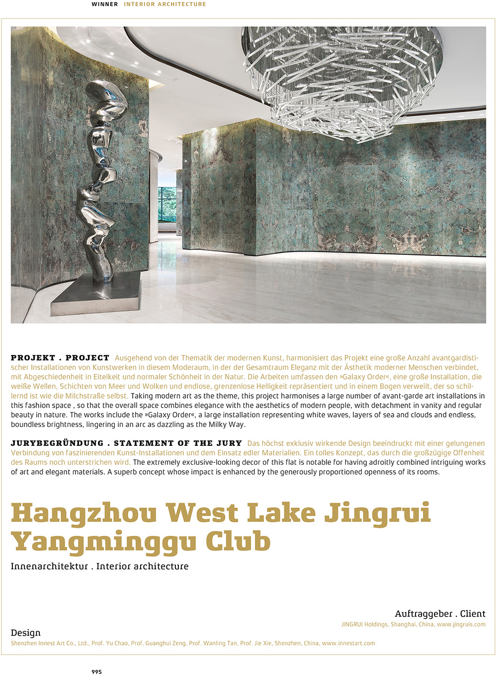 2019德国German Design Award室内建筑类别WINNER